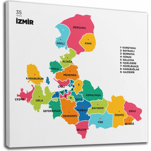 İzmir'in Aliağa, Balçova, Bayındır, Bayraklı, Bergama, Beydağ, Bornova, Buca, Çeşme, Çiğli, Dikili, Foça, Gaziemir, Güzelbahçe, Karabağlar, Karaburun, Karşıyaka, Kemalpaşa, Kınık, Kiraz, Konak, Menderes, Menemen, Narlıdere, Ödemiş, Seferihisar, Selçuk, Tire, Torbalı ve Urla olmak üzere 30 ilçesi bulunuyor.